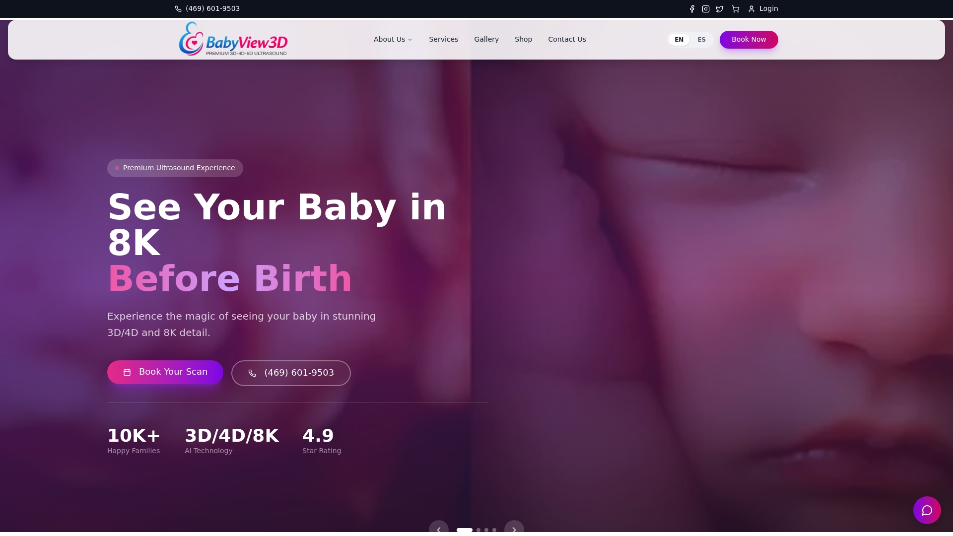 BabyView3D ofrece una experiencia de ultrasonido prenatal 3D, 4D y 8K diseñada para familias que buscan imágenes emotivas y detalladas antes del nacimiento. Con más de 15 años de trayectoria, se presenta como la opción líder en calidad y detalle.