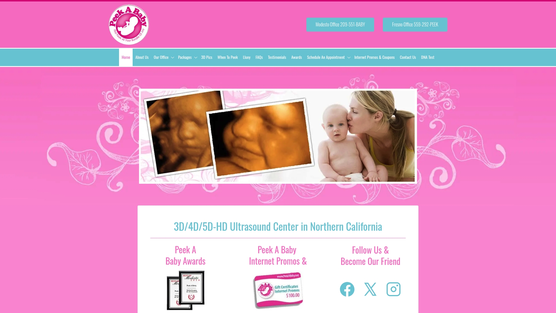 Peek A Baby ofrece una experiencia emocional de ultrasonido orientada a futuros padres en el Norte de California, con énfasis en imágenes detalladas y tecnología moderna. Su propuesta brilla por la calidad visual y por servicios complementarios como determinación de sexo y escucha del latido.