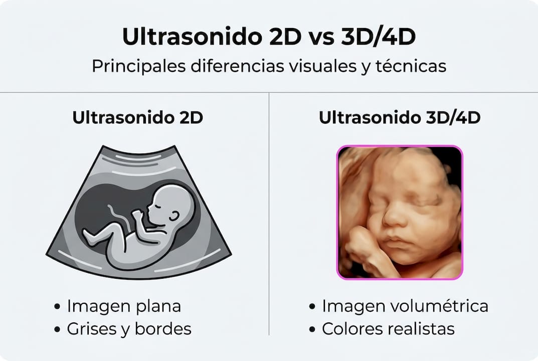 | Característica | Ultrasonido 2D | Ultrasonido 3D/4D |